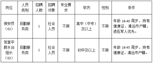 清遠市清城區(qū)機關事務管理局因工作需要,根據(jù)《關于印發(fā)<清遠市清城區(qū)機關事業(yè)單位專項工作聘員、合同制聘員以及后勤服務類人員管理辦法>的通知》(城區(qū)人社〔2022〕20號)文件精神,面向社會公開招聘后勤服務類人員2名,現(xiàn)將有關事宜公告如下: