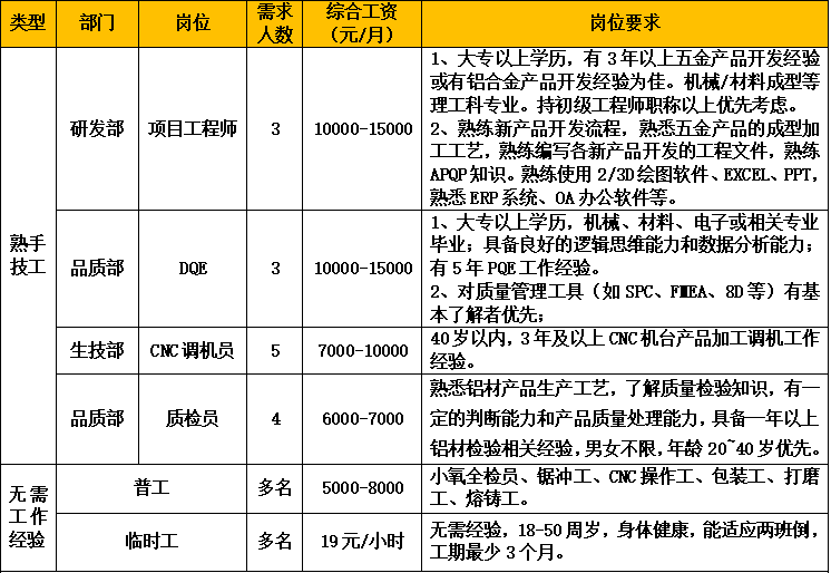 清遠(yuǎn)市鈦美鋁業(yè)有限公司誠聘