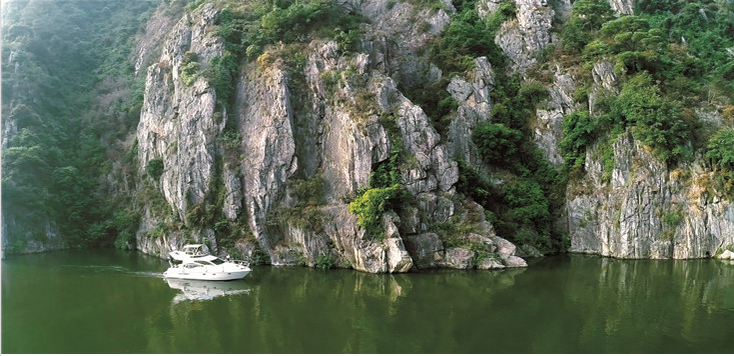 4[行游體驗(yàn)] 湞陽(yáng)峽:北江精華所在到湞陽(yáng)峽度假區(qū)旅游,船游北江是首選的一項(xiàng)活動(dòng),千萬(wàn)不能錯(cuò)過(guò)。度假區(qū)內(nèi)有個(gè)湞陽(yáng)峽游艇俱樂(lè)部,可以在這里登上輪船或者快艇,去感受北江的魅力。湞陽(yáng)峽可以說(shuō)是北江的精華所在,兩岸奇峰聳立,峭壁險(xiǎn)峻,水勢(shì)洶涌,據(jù)說(shuō)為古代水路交通咽喉,兵家防范要地。漢代趙佗在南越稱(chēng)王后,就于湞陽(yáng)峽下游不遠(yuǎn)的江口咀筑萬(wàn)人城,屯兵扼險(xiǎn),阻止?jié)h兵南下。由此可見(jiàn)這里地勢(shì)險(xiǎn)要。湞陽(yáng)峽以其“秀、奇、險(xiǎn)、幻”而聞名,江峽沿岸還有九道灣、八丈石、盲仔石、犀牛石、將軍石等景觀。湞陽(yáng)峽還是美麗的庫(kù)區(qū),沿岸一邊是古時(shí)嶺南荔枝北上進(jìn)貢的棧道,另一邊新棧橋如今是北江最美的公路—— 銀英公路。