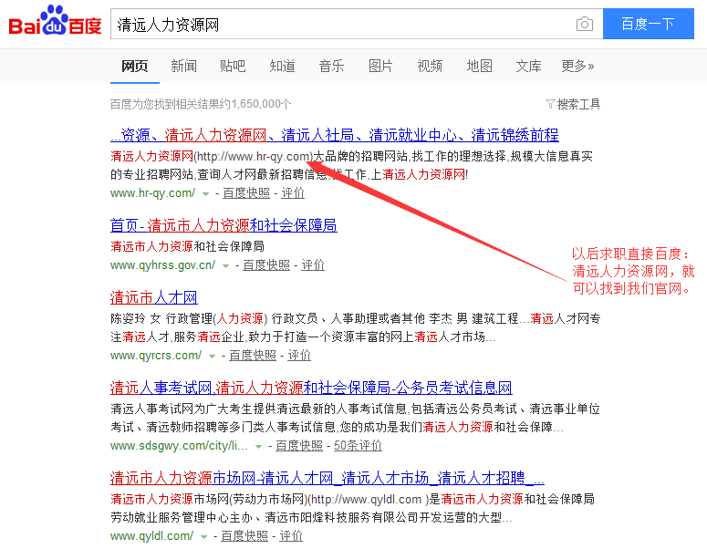 恭喜“清遠人力資源網(wǎng)”m.sdstfh.com榮登百度搜索清遠地 區(qū)首位。清遠人力資源網(wǎng)是由清遠市人力資源市場指導、清遠市錦繡 前程人力資源有限公司運營的官方求職招聘平臺。從3月份正式推 廣到現(xiàn)在,本網(wǎng)站已經(jīng)吸引了眾多企業(yè)與求職者注冊。